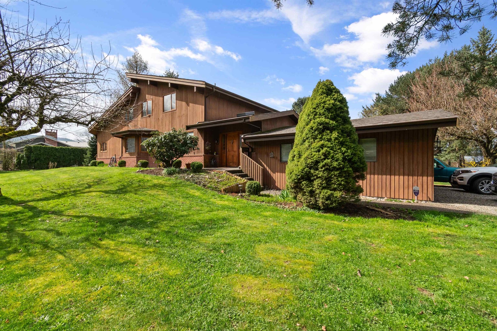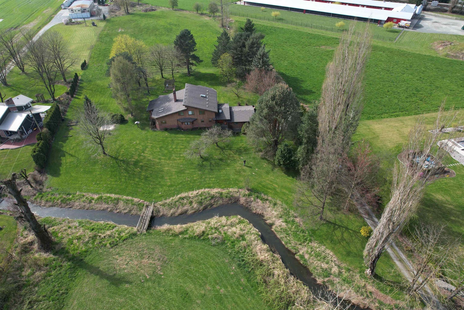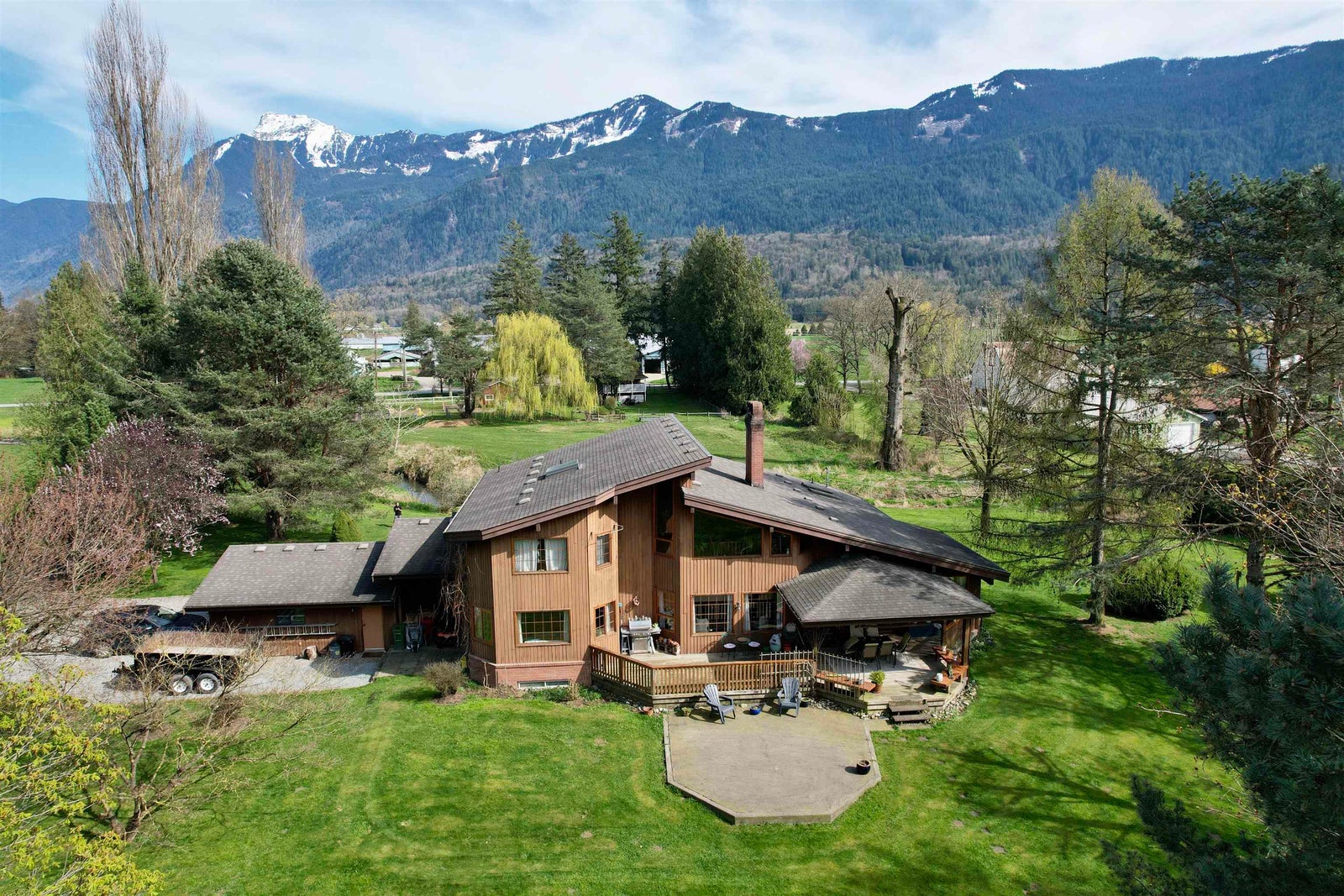 A rare masterpiece of hand-built craftsmanship, this Swiss-style home sits on 5 private acres w/ stunning mountain views. Built w/ old-world European detail, it features handcrafted cedar, vaulted ceilings, & a striking two-story brick fireplace. The great room flows into open living & dining areas, w/ a charming second-floor balcony above. A covered deck overlooks a serene creek that runs through the property. The main home includes a reading room, office, spacious dining area, & a luxurious ensuite with soaker tub. A basement workshop adds space for hobbies or storage. Radiant hot water heat & hardwood floors create a warm, natural interior. A second residence offers rental income — please do not disturb tenants. This is a rare opportunity to own a truly distinctive, high-quality home.